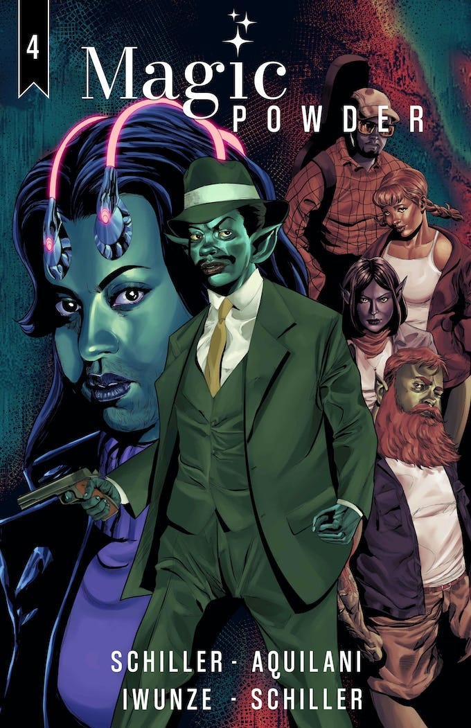 The Magic Powder saga continues in Issue #4, as each crew attempts to put the pieces back together following the fallout of Issues 1-3. We'll go deeper into the city of Thesz, and meet some of the characters who are living in the thick of the Magic Powder action. Will the Dwarvfather's system recover from their in-fighting long enough to find the elf who pit them against one another, or is it already too late?